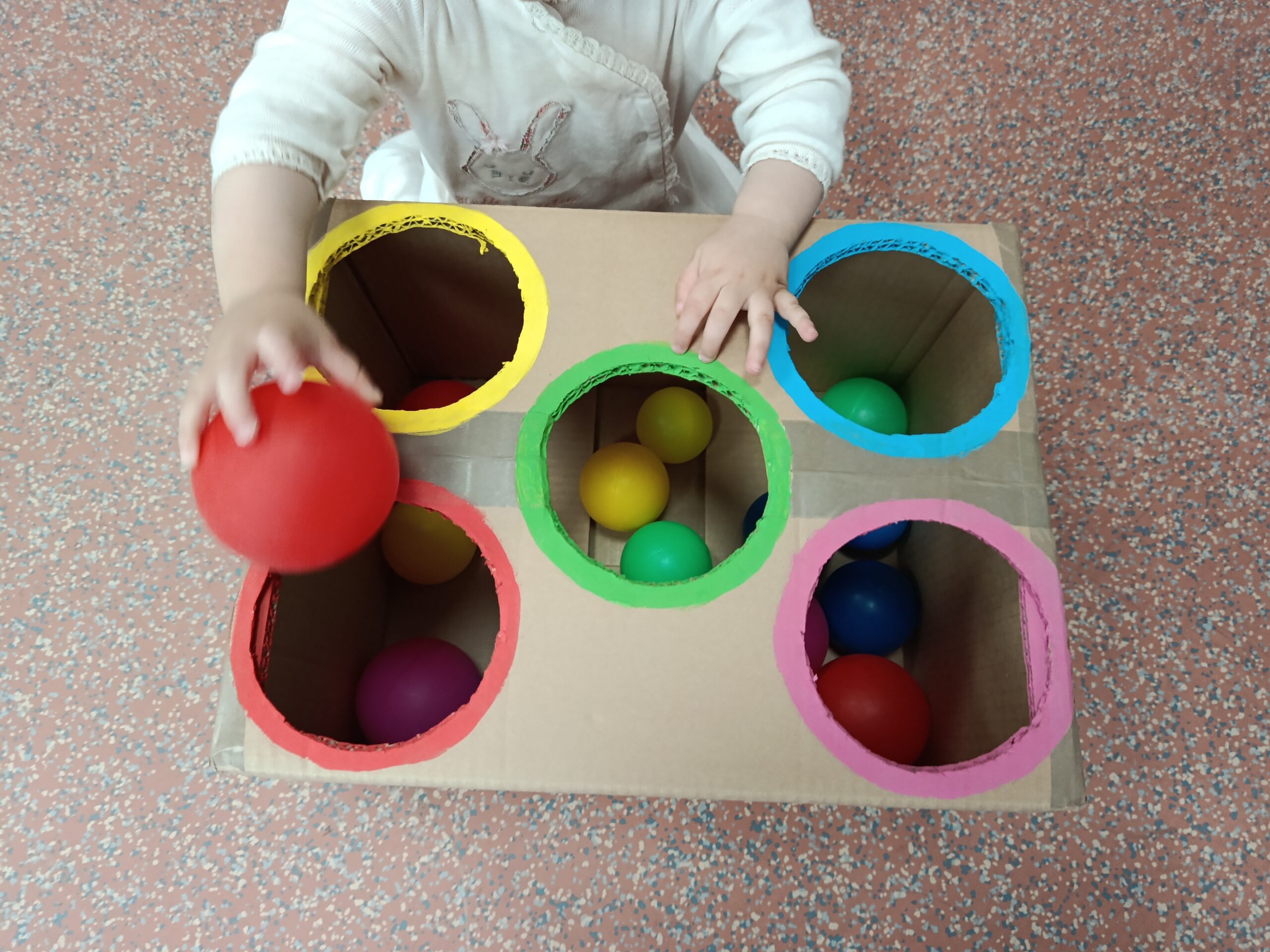 • Ikusmen-identifikazioa: hainbat kolore eta tamainatako bolak erabiliz, haurrak kontrasteak eta desberdintasunak hautematen hasi dira.